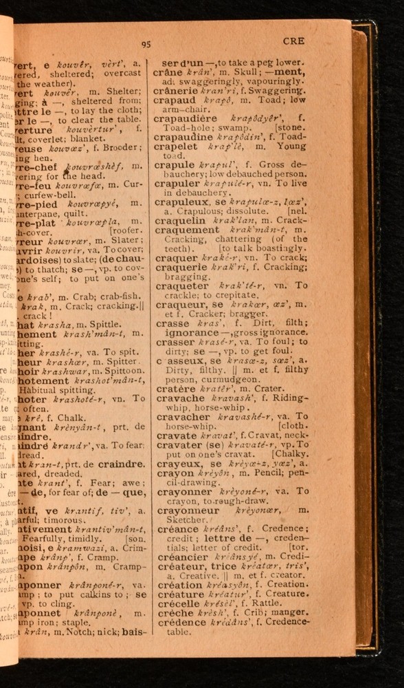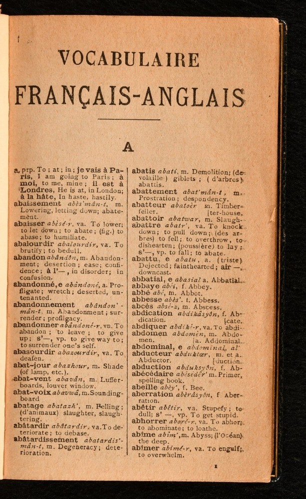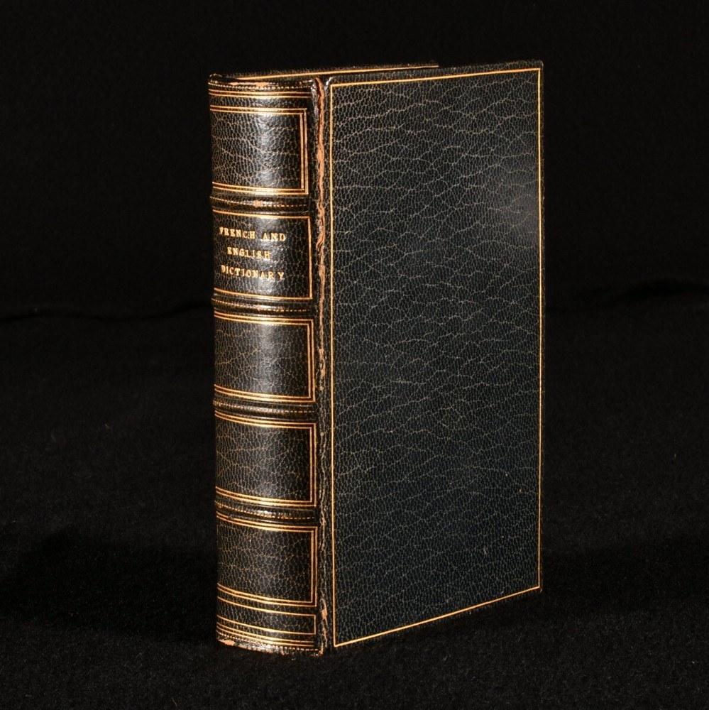 Click here to see our other books! French-English Dictionary Not Stated c1900 Not Stated : Not Stated 5" by 3.5" [2], 358, 378pp SUMMARY A beautifully bound French English dictionary, a pocket-sized volume in a navy crushed morocco binding. Fine Binding,Leather Binding Overall Condition: Very Good Indeed This book weighs 0.5 KG when packed UK Postage: £ 3.99 US Postage: £ 15.99 EU Postage : £ 13.99 European Postage: £ 14.99 Asia Postage: £ 18.99 Worldwide Postage: £ 19.99 DESCRIPTION A pocket-sized French-English dictionary, in a full navy crushed morocco binding. Sold by Brooks Brothers, with their stamp to the verso to the front endpaper. Brooks Brothers is the oldest appear brand in continuous operation in America, founded in Manhattan, 1818. Bound without a title page, though it is likely it was issued with no title page and only a half-title. The half-title states 'Reference Library'. CONDITION In a full crushed morocco binding. Externally, smart, with a little rubbing. Small crack to the head of the front joint. Internally, firmly bound. Pages are lightly age-toned and clean. Overall Condition: Very Good Indeed GLOSSARY OF TERMS Overall Condition (Dustwrapper condition rating is shown after that for the book itself, where a dustwrapper is present) Fine - Very well preserved copy showing very little wear Very Good Indeed - Only one or two minor faults, really a very attractive copy Very Good - Quite a wide term meaning no major faults but probably several smaller ones often expected given the age of the book, but still a respectable copy Good - Meaning not very good. Some more serious faults as will be described in the condition report under 'condition' Good Only - Meaning one or more faults that could really do with repair Fair - As with good only above but with other faults leaving a compromised copy even after repair Poor - Really bad and possibly seriously incomplete. We only sell books in this condition where their rarity or value makes them attractive none the less. Major defects will be described. GUARANTEE We offer a full money back guarantee on our descriptions. Please ask for details and conditions. We prefer PAYPAL. If you pay via PAYPAL we will post the item off the same or the next working day with the postage you have selected. Please note we cannot accept USD cheques