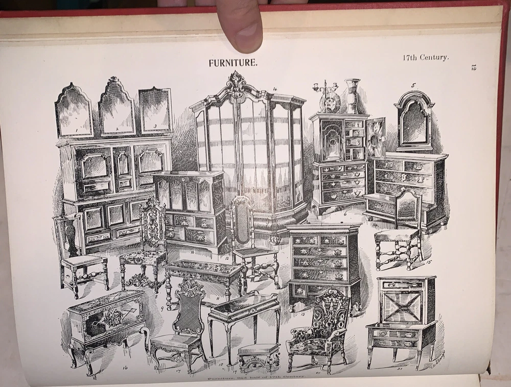 A Guide to Collectors 3,500 Illustrations. English Furniture, Decoration, Woodwork & Allied Arts During the last half of the Seventeenth Century, the whole of the Eighteenth Century, and the earlier part of the Nineteenth. by Thomas Arthur Strange London: McCorquodale & Co. ND, circa 1900 Quarto, 368 pages, publisher's gilt lettered black leather over gilt lettered red cloth covered boards. Profusely illustrated throughout in black and white. Some slight rubbing and wear, else in very good condition. If you have any questions feel free to ask and don't forget to check out my other listings.