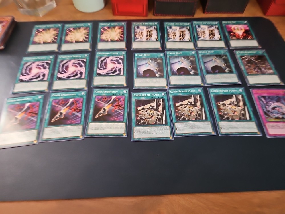 All cards are LP or Near mint. A majority of the cards are from the Cyber Strike Structure deck. Spells, Traps, main monster, and extra are all included The "Cyber Dragon Deck Core" is a collection of Yu-Gi-Oh! TCG cards centered around the Cyber Dragon archetype, manufactured by Konami. This deck core includes essential cards needed to build a Cyber Dragon deck for use in collectible card game tournaments. The Cyber Dragon archetype focuses on summoning powerful Machine-type monsters like Cyber Dragon Infinity and Cyber Dragon Nova to overwhelm opponents and control the field. Perfect for players looking to enhance their deck with Cyber Dragon support cards.