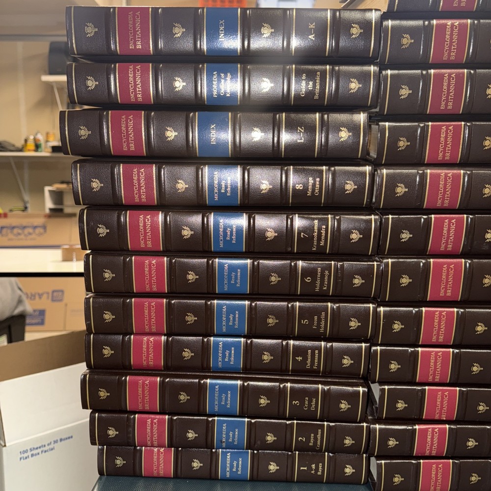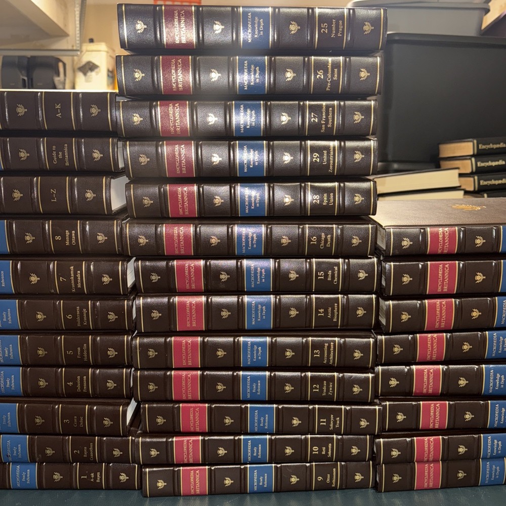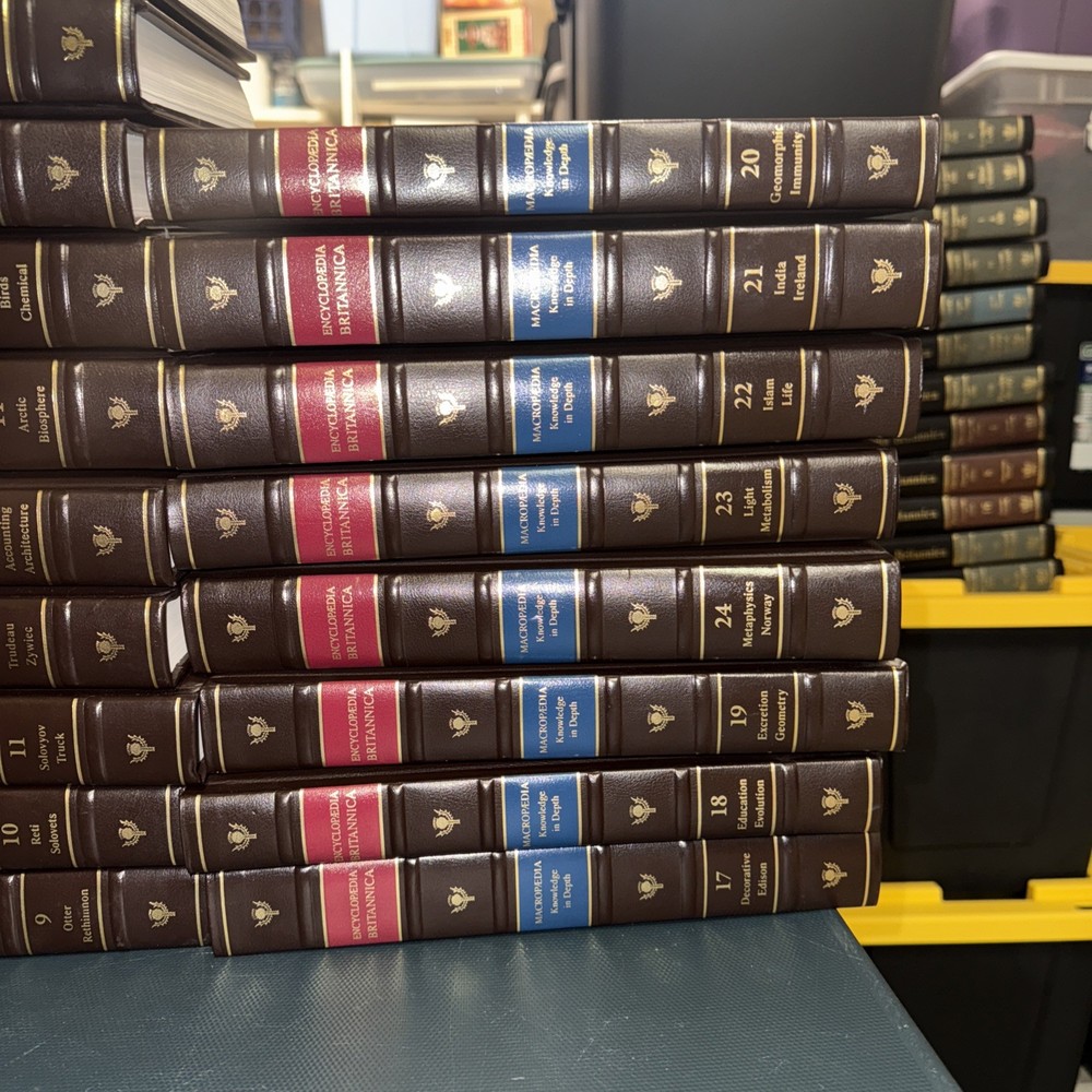 The product is a set of 29 leather-bound microfiche books from the Encyclopedia Britannica collection, along with 3 other leather books. These books provide a comprehensive reference library on a variety of topics, making them a valuable addition to any antiques or collectible book collection. With their high-quality leather binding, these books are not only practical for reference but also aesthetically pleasing for any book lover.
