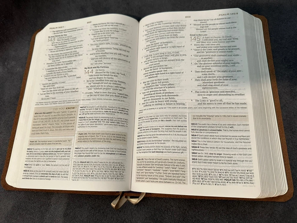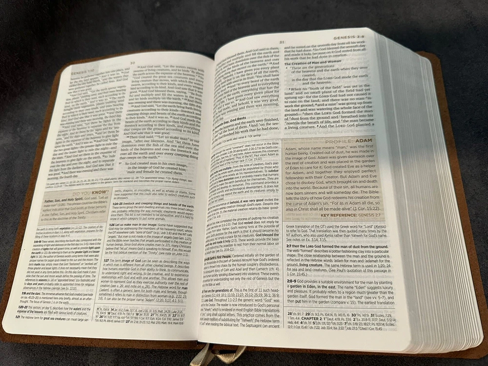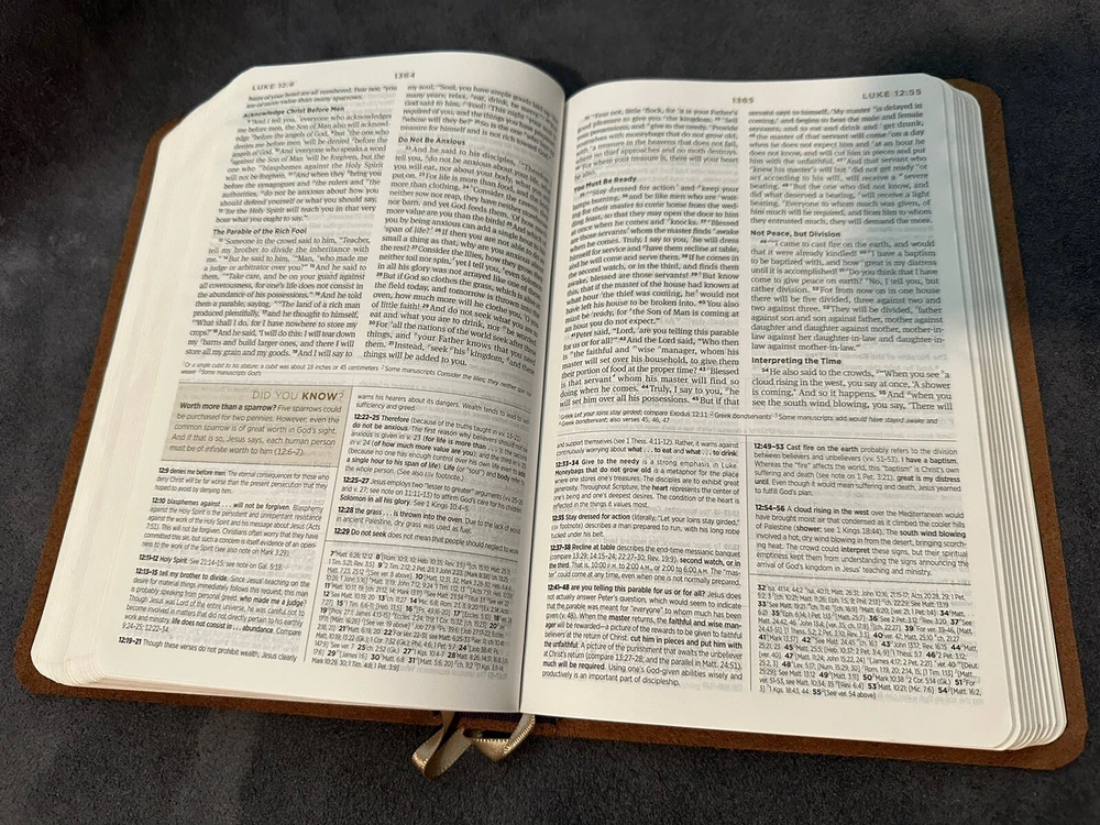 Item was as described, no marks or highlights in the txt which is what I wanted. He does great quality work on rebinding the Bible. I was searching for a NASB 95 life application Bible, but they are no longer in print and not many out there that doesn’t have mark free txt. Seller is up front regarding shipping. Bible was neatly packed. For what I was looking for this was a great value. Keep doing the Lords work!