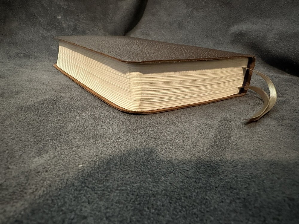 This book is available in many colors! Please send me a message if you are interested. Also if you need a re-bind on your Bible/book I can do that as well. I try to be very affordable.)Shipped with USPS Media Mail. Comes with genuine cowhide leather, the thickness of leather is 4 oz. the leather is very soft and durable, ribs on spine for elegant look, 2 ribbons, this Bible has no markings or highlights whatsoever it has never been used plz examine pics carefully before purchasing and feel free to ask any questions, I do my best to respond quickly and also be sure to check out the other bibles that I have for sale, and if you want a certain Bible rebound let me know I can do that too, God bless. Also, take note shipping can take 1 to 5 business days depending on how many orders I have.