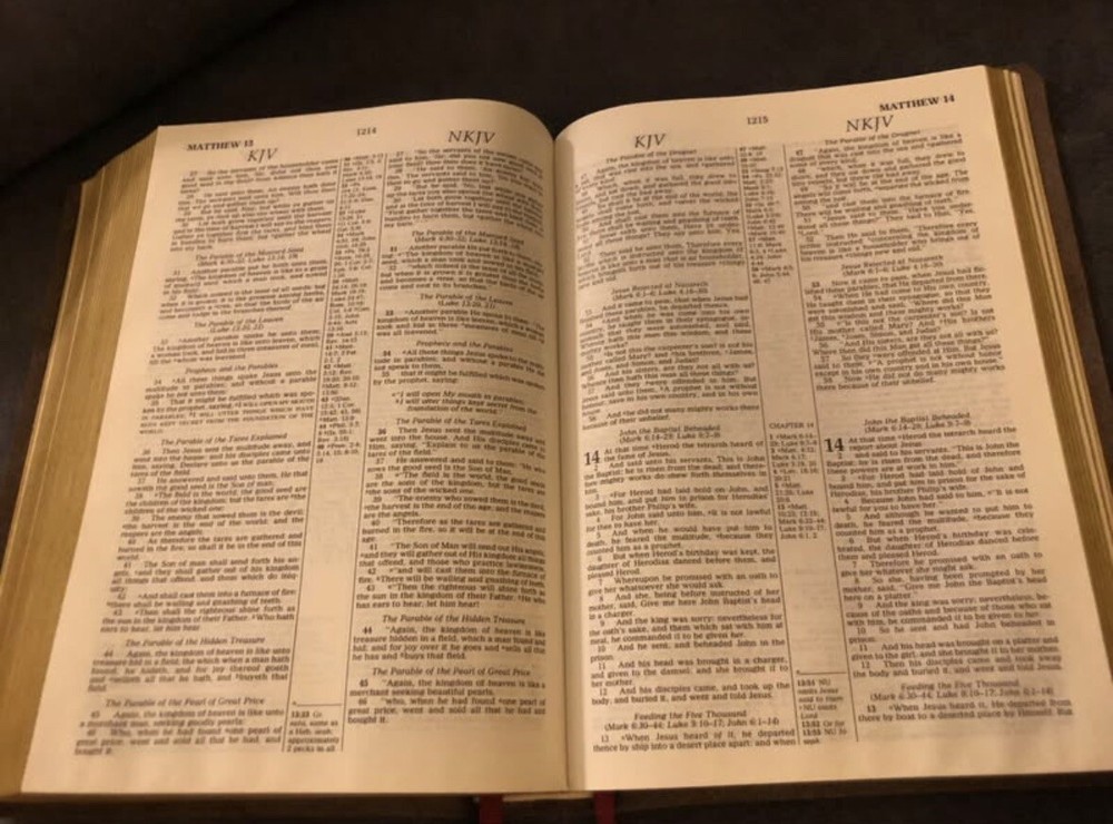 Item was as described, no marks or highlights in the txt which is what I wanted. He does great quality work on rebinding the Bible. I was searching for a NASB 95 life application Bible, but they are no longer in print and not many out there that doesn’t have mark free txt. Seller is up front regarding shipping. Bible was neatly packed. For what I was looking for this was a great value. Keep doing the Lords work!