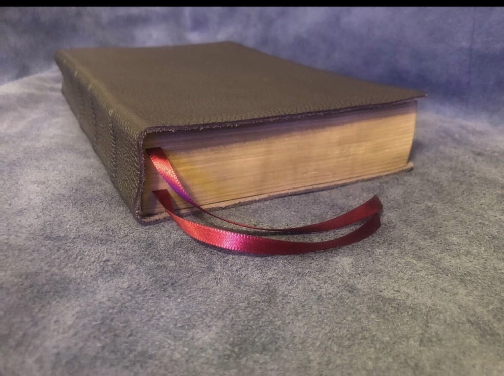This book is available in many colors! Please send me a message if you are interested. Also if you need a re-bind on your Bible/book I can do that as well. I try to be very affordable.)Shipped with USPS Media Mail. Comes with genuine cowhide leather, the thickness of leather is 4 oz. the leather is very soft and durable, ribs on spine for elegant look, 2 ribbons, this Bible has no markings or highlights whatsoever it has never been used plz examine pics carefully before purchasing and feel free to ask any questions, I do my best to respond quickly and also be sure to check out the other bibles that I have for sale, and if you want a certain Bible rebound let me know I can do that too, God bless. Also, take note shipping and handling can take 1 to 5 business days depending on how many orders I have.