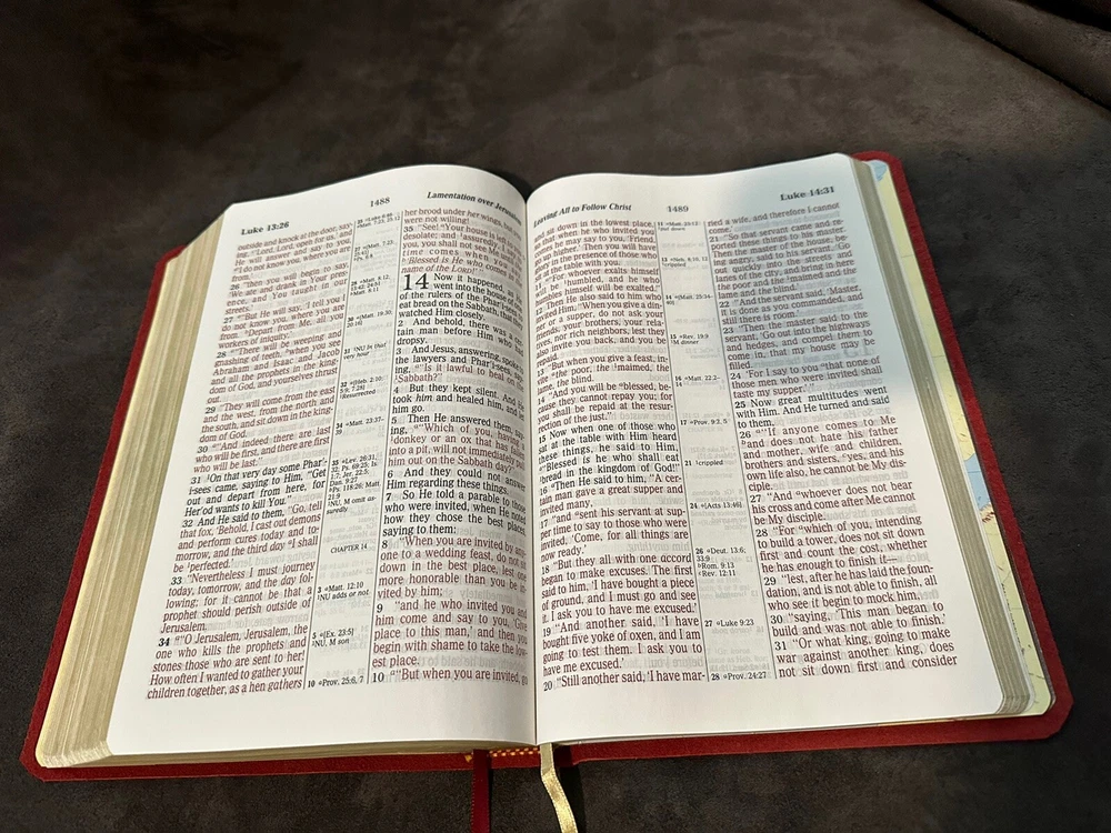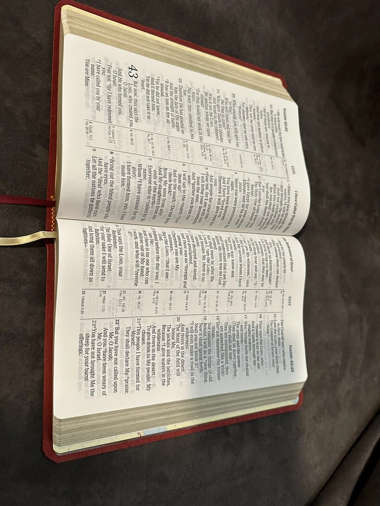 Bible was received in very good condition. Good transaction. Shipping time was as described by seller; but my caution to anyone would be that if you’re anxious to quickly receive your item, you should look elsewhere —- however; seller isn’t at fault, as he estimates delivery time at about 2 - 3 weeks out from the purchase date. Overall, happy with purchase. 😊