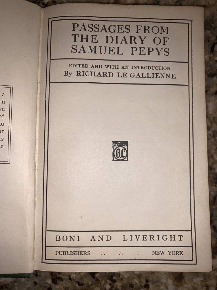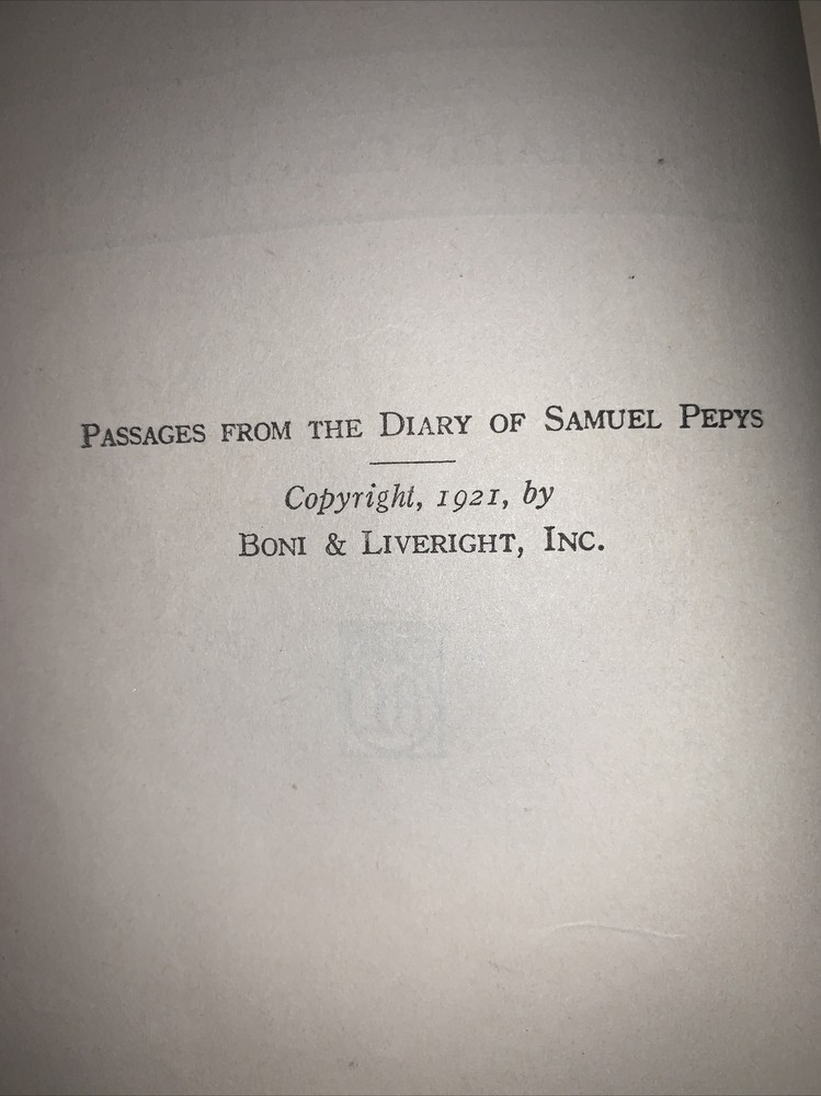 samuel pepys diary. Shipped with USPS Media Mail. Published in 1921 by Bono & Liveright Inc