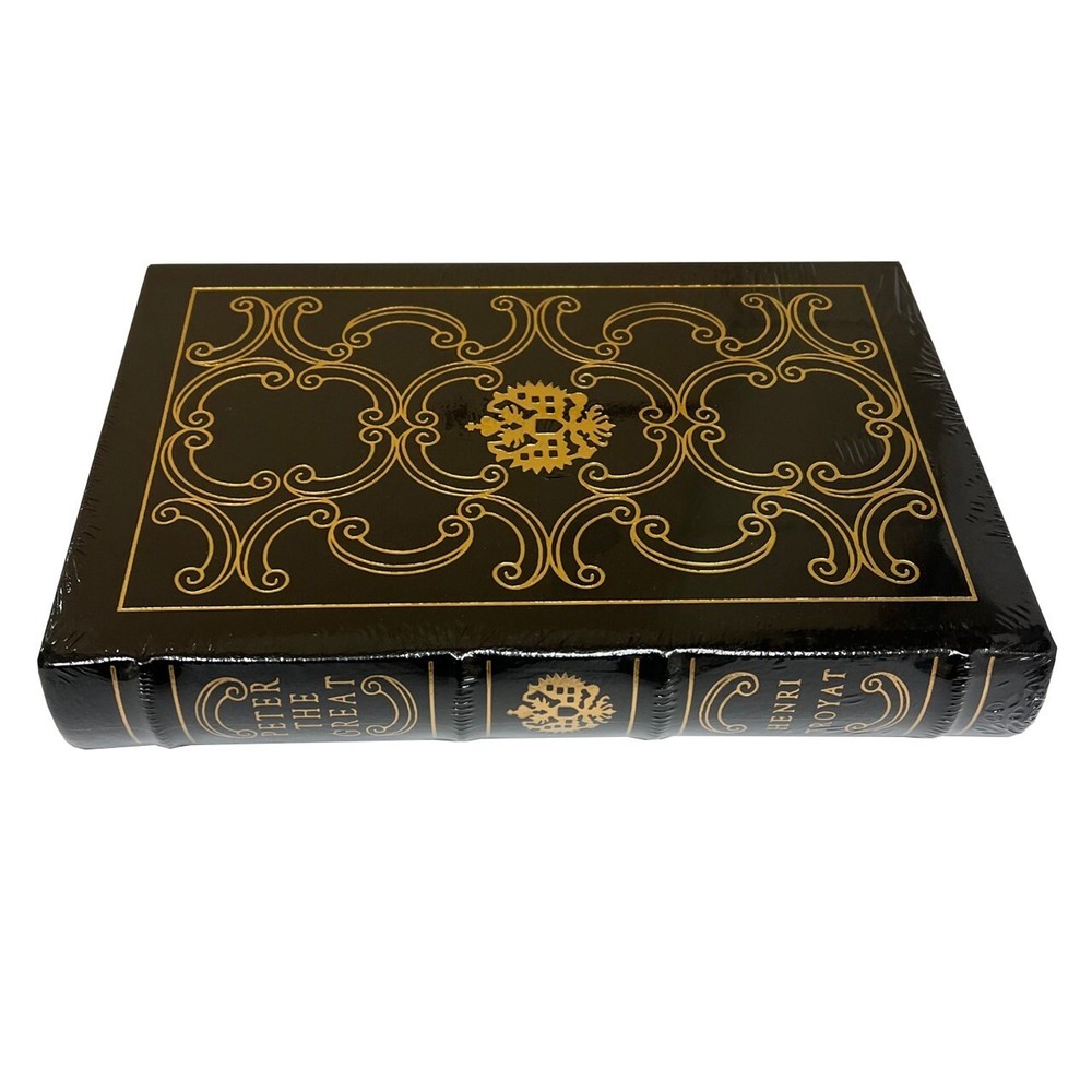 Thank you for visiting Find more great books in our Easton Press Library Easton Press, Norwalk CT. 1993 Henri Troyat "Peter the Great" Limited Edition. Full genuine leather. The Library of Great Lives. As New, sealed without any flaws. Russia's Peter the Great, a cruel visionary imbued equally with a fascination for progress and absolute power. About Peter The Great Peter I, most commonly known as Peter the Great, was a monarch of Russia who modernised it and made it a European power. He ruled the Tsardom of Russia from 7 May 1682 to 1721 and subsequently the Russian Empire until his death in 1725, jointly ruling before 1696 with his elder half-brother, Ivan V. Through a number of successful wars, he captured ports at Azov and the Baltic Sea, laying the groundwork for the Imperial Russian Navy, ending uncontested Swedish supremacy in the Baltic and beginning the Tsardom's expansion into a much larger empire that became a major European power. He led a cultural revolution that replaced some of the traditionalist and medieval social and political systems with ones that were modern, scientific, Westernised and based on the Enlightenment.[1] Peter's reforms had a lasting impact on Russia, and many institutions of the Russian government trace their origins to his reign. He adopted the title of Emperor in place of the old title of Tsar in 1721, and founded and developed the city of Saint Petersburg, which remained the capital of Russia until 1918. However, the formation of local elites domestically was not his main priority, and the first Russian university—Saint Petersburg State University—was founded only a year before his death, in 1724. The second one, Moscow State University, was founded 30 years after his death, during the reign of his daughter Elizabeth. About the author Henri Troyat, who has died at the age of 95, was one of the most prolific and popular French writers of the 20th century. The author of short psychological novels, long, multi-volume historical frescos, short stories, plays, reportages and biographies, he had a literary career that spanned 70 years, and was particularly distinctive for its unique blend of French and Russian cultures. Troyat was born Lev Aslanovich Tarassov in Moscow, the son of a wealthy Armenian draper who had made a fortune through investment in railways and banking. He was brought up in a privileged environment, with a coachman, a chauffeur and, most significantly, a Swiss governess who taught him French. All this came to an end when the Russian revolution broke out in 1917. Initially, the family retreated to their estate in the Caucasus to await the collapse of Bolshevik rule; but by 1920 it was clear that the counter-revolution was failing and that they would have to leave their homeland. They managed to catch the last émigré boat from the Crimea to Constantinople, from where they joined the exiled Russian community in Paris, settling in the prosperous suburb of Neuilly, where Troyat attended the Lycée Pasteur. Like many Russian exiles, however, the family found life in the west difficult and drifted slowly into debt, culminating with the arrival of the bailiffs and an enforced move to the Place de la Nation. Features Includes all the classic Easton Press qualities: * Premium Leather * Silk Moire Endleaves * Distinctive Cover Design * Hubbed Spine, Accented in Real 22KT Gold * Satin Ribbon Page Marker * Gilded Page Edges * Long-lasting, High Quality Acid-neutral Paper * Smyth-sewn Pages for Strength and Durability * Beautiful Illustrations Thank you for visiting Find more great books in our Easton Press Library