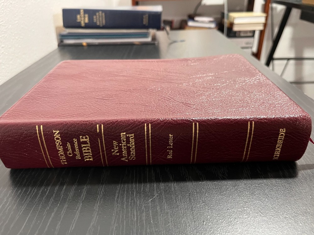 TCRB NASB 1993 Genuine Leather, Burgundy Psalms and a few Letters of Paul have blue Bible pencil highlighting Solid Binding, Clean Pages, a few pages (4-5) have a pen note See Photos OOP Out of Print...