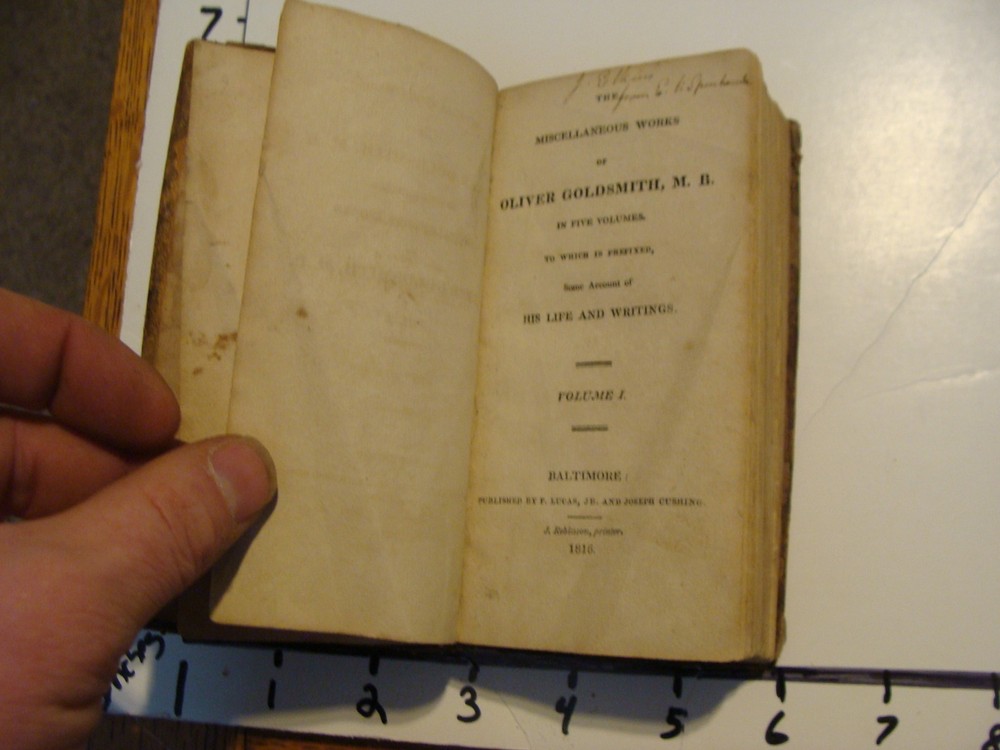 thanks for checking out one of my items, if you like this you will probably like other items i have, i get tons of stuff in diverse fields of collecting and use. NOTE: i will always combine items to save you shipping cost. THIS ITEM IS----one of so many great books i have on ebay right now, check them all out if you wish, pictures show condition, ebays zoom in feature is great to really see what you are considering:--------THE MISCELLANEOUS WORKS OF OLIVER GOLDSMITH, M. B. Volume 1. To Which is Prefixed, Some Account of His Life and Writings. Pub. by F. Lucas, Jr. & Joseph Cushing, Baltimore, 1816. Worn, see photos. 278 pgs. VIEW MY OTHER AUCTION ITEMS TERMS AND CONDITIONS 1. Paypal users must be verified, and have a confirmed address. 2. Payment must be received within 5 days, or sale is voided, and item may be relisted. 3.Shipping is usually done by USPS or Fed Ex. I may switch shipping carrier and methods at any time. 4.Seller assumes no responsibitlity with regards to loss, damage of property, or personal injury. 5. Bidder must be 18 years or older to participate in this auction. 6.By placing a bid, you are accepting these terms and conditions. VIEW MY OTHER AUCTION ITEMS LOCATION-- box ( small quill box ) Powered by eBay Turbo Lister The free listing tool. List your items fast and easy and manage your active items.