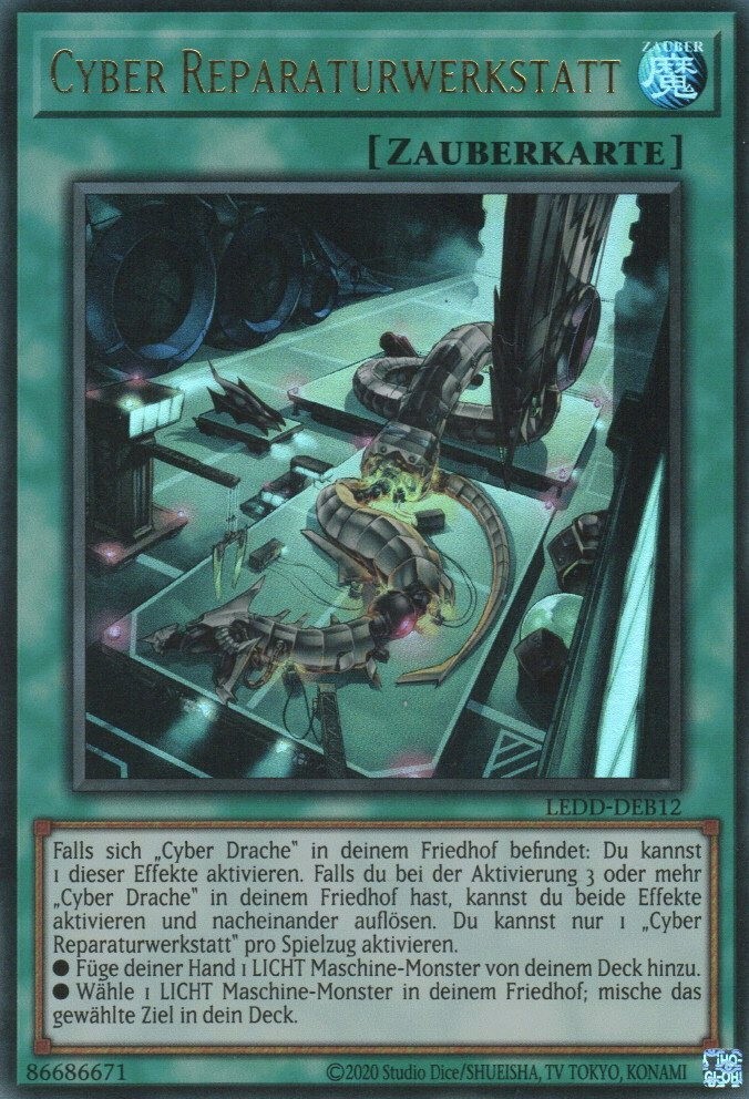 Just pulled this Cyber Repair Shop Ultra Rare from LEDD-DEB12 and it’s absolutely stunning! The German 2nd Edition print is crisp, with perfect centering and no edge wear. Seller shipped fast with secure packaging—highly recommend for any Yu-Gi-Oh! collector or Cyber Dragon deck builder. A must-have for competitive play!