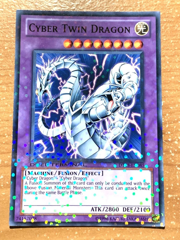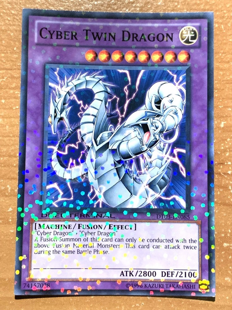 This auction is for 1 of the card listed in the title, in the condition listed in the title Cyber Twin Dragon DT03-EN085 Normal Parallel new card Near Mint If the condition is not specified the items will be in mint/near mint condition See our grading scale for details. FOR TRADING CARDS: CONDITION INFORMATION v Near Mint (NM) – Card will be Mint or very close to it. v Lightly Played (LP) – Card will have edge wear and/or small dents, but no major creases. v Moderately Played/Played (MP/P) – Card will have visible creases, dents and/or edge wear. v Heavily Played (HP) – Card will noticeable damage such as large creases and/or heavy edge wear. v Damaged (Da) - Card will be in very played condition, heavy edgewear, large creases, entire card may be played. SHIPPING INFORMATION Ø Your items will be shipped out within 24 hours of purchase on BUSINESS DAYS ONLY . This excludes Saturdays, Sundays, and US Holidays. Please allow 2-9 business days for USPS to deliver your items Ø Please add all items to your cart prior to checkout to ensure your items are mailed together. Ø VERY IMPORTANT - PLEASE READ!!! Check your shipping address prior to check out to be sure that we are sending it to the correct address!!! Please be sure to include apartment or unit #’s when applicable. · A PLAYMAT will be shipped in a cardboard tube and tracking information will be included. Multiple playmats will be shipped in a large bubble mailer. · SLEEVES will be shipped in a bubble mailer and tracking information will be included. · CARDS will be placed into a top loader and a sleeve during shipping for protection. Purchases over $15 will have tracking information, free of charge. · FULL DECKS will be sleeved, placed in a deck box, and shipped in a bubble mailer. Tracking will be included. WE SHIP INTERNATIONALLY!!! International Buyers - Please Note: Import duties, taxes, and charges are not included in the item price or shipping cost. These charges are the buyer's responsibility. Please check with your country's customs office to determine what these additional costs will be prior to bidding or buying. · Excludes South America – NO EXCEPTIONS · We will not claim less than the value of what you purchase, so please do not ask. · We ship via the Global Shipping program. Shipping charges are created by eBay and received by their third party shipping department, therefore we do not have any control over the prices. o Includes tracking information (even outside the U.S.). o Insurance for package is also included. FEEL SAFE WHEN SHOPPING WITH US THANK YOU FOR SHOPPING WITH US, PLEASE CHECK OUT OUR OTHER ITEMS FOR MORE GREAT DEALS!